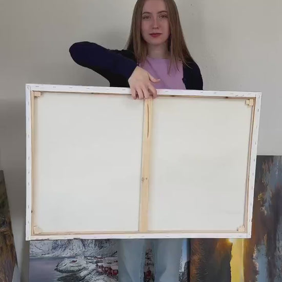 The sides are painted as a continuation of the scene, so it can be hung without a frame.
