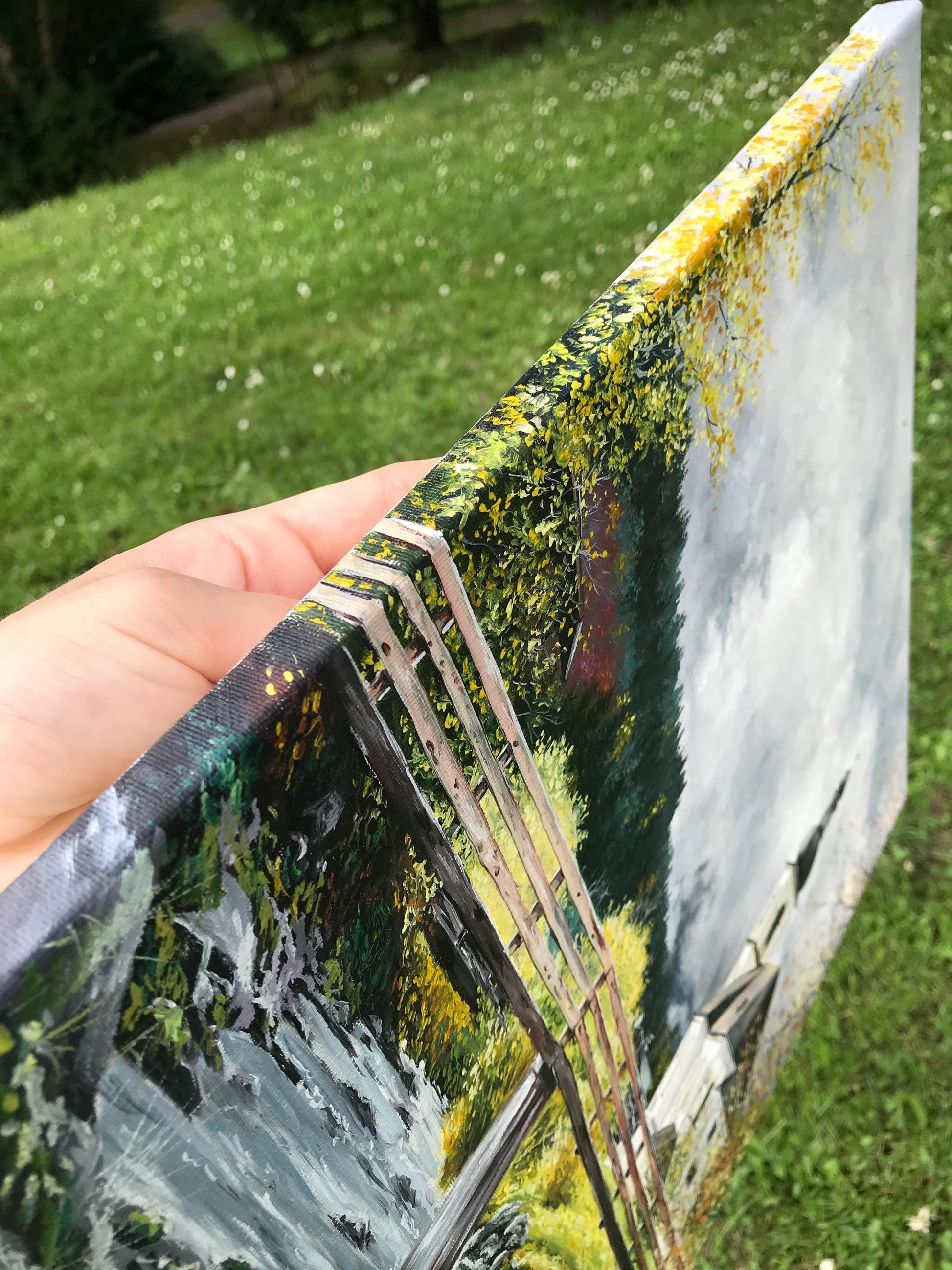 The sides are painted as a continuation of the scene, so it can be hung without a frame.