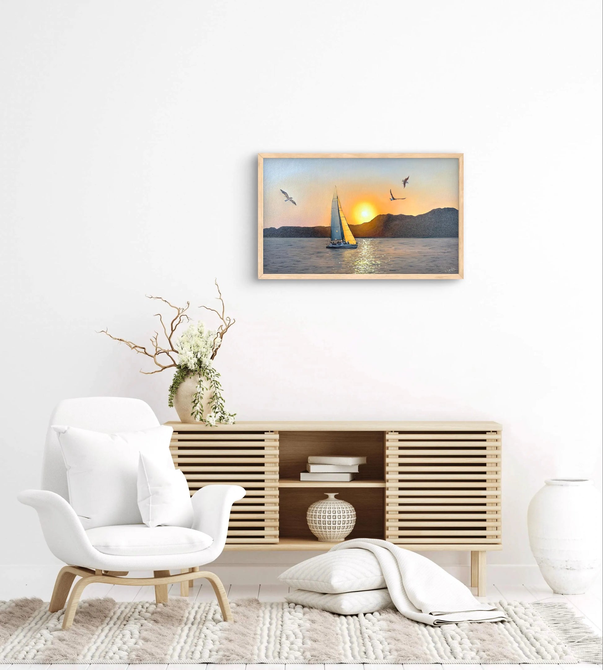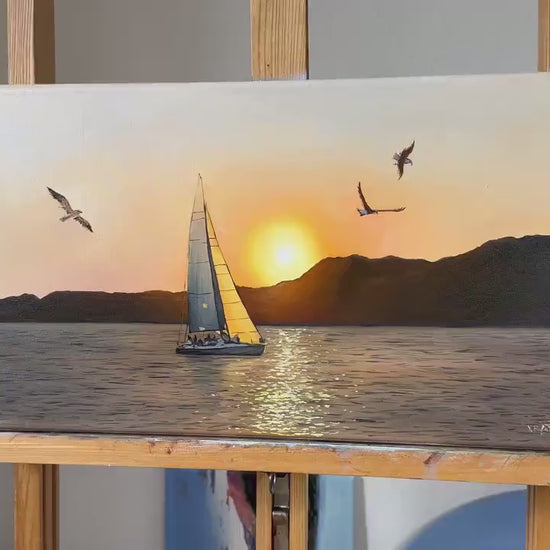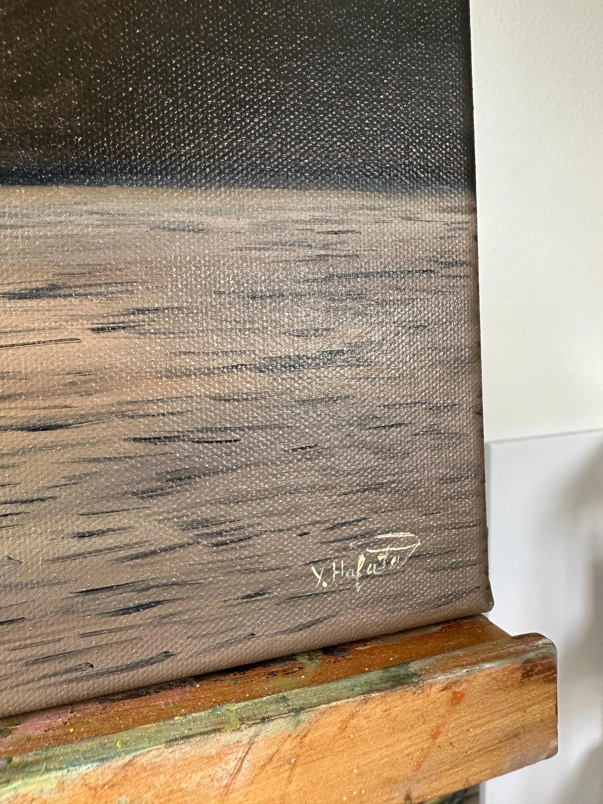 This original oil painting captures a sunset over the Red Sea in Egypt.