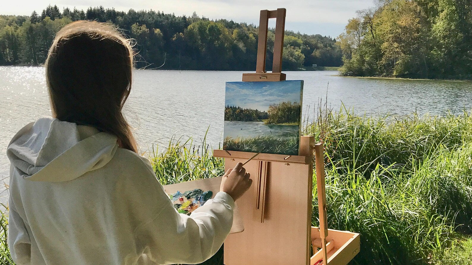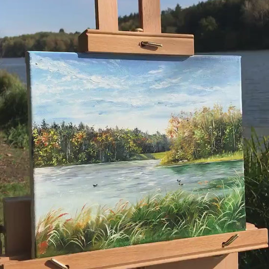 The painting that I painted from nature of the beautiful, tranquil Bavarian lake Ellertshäuser.