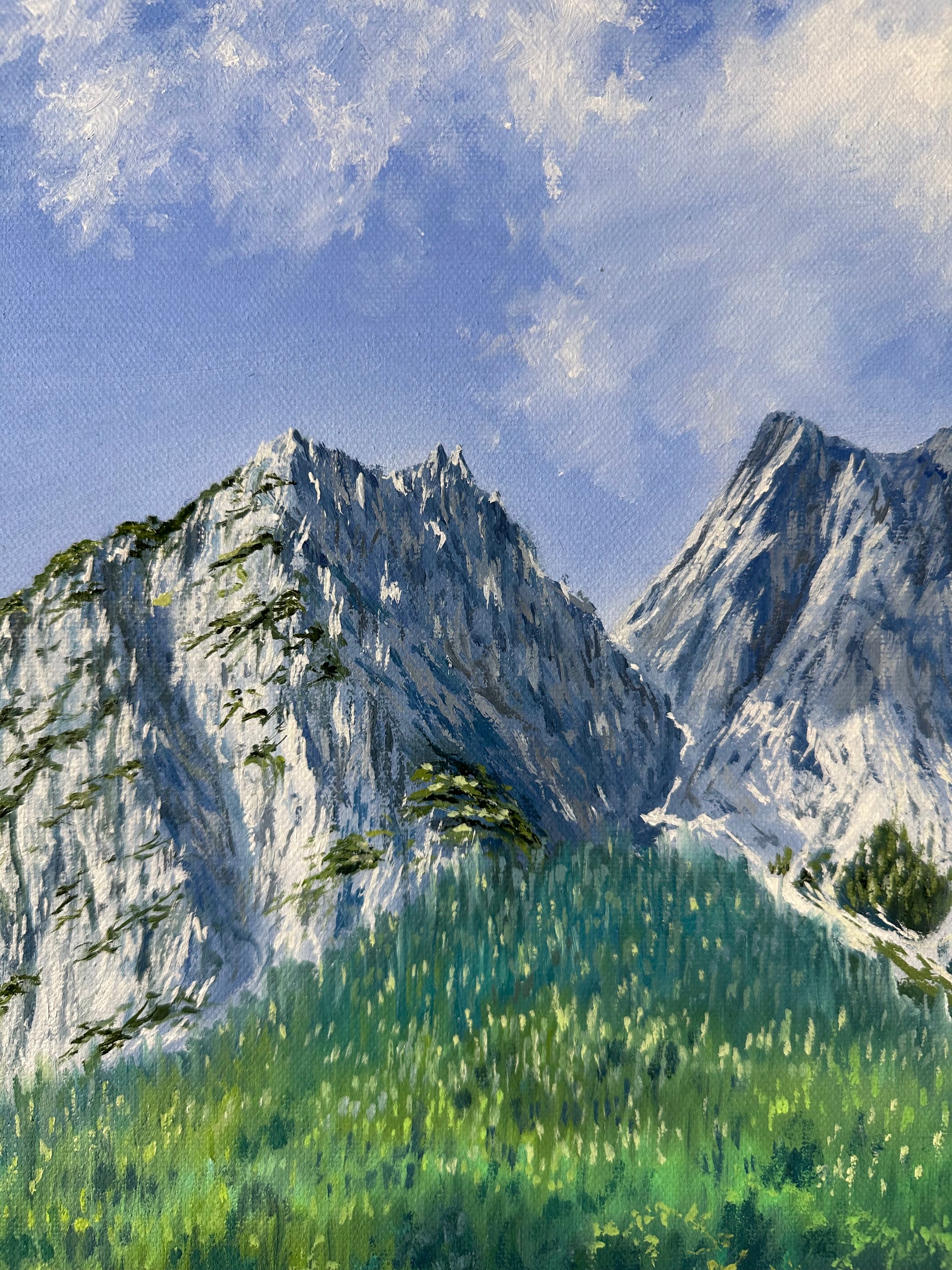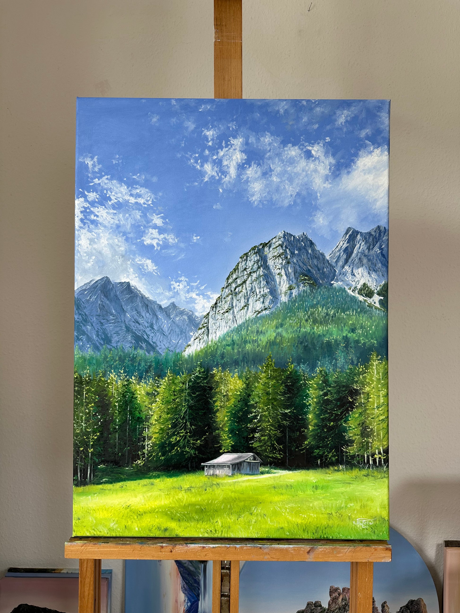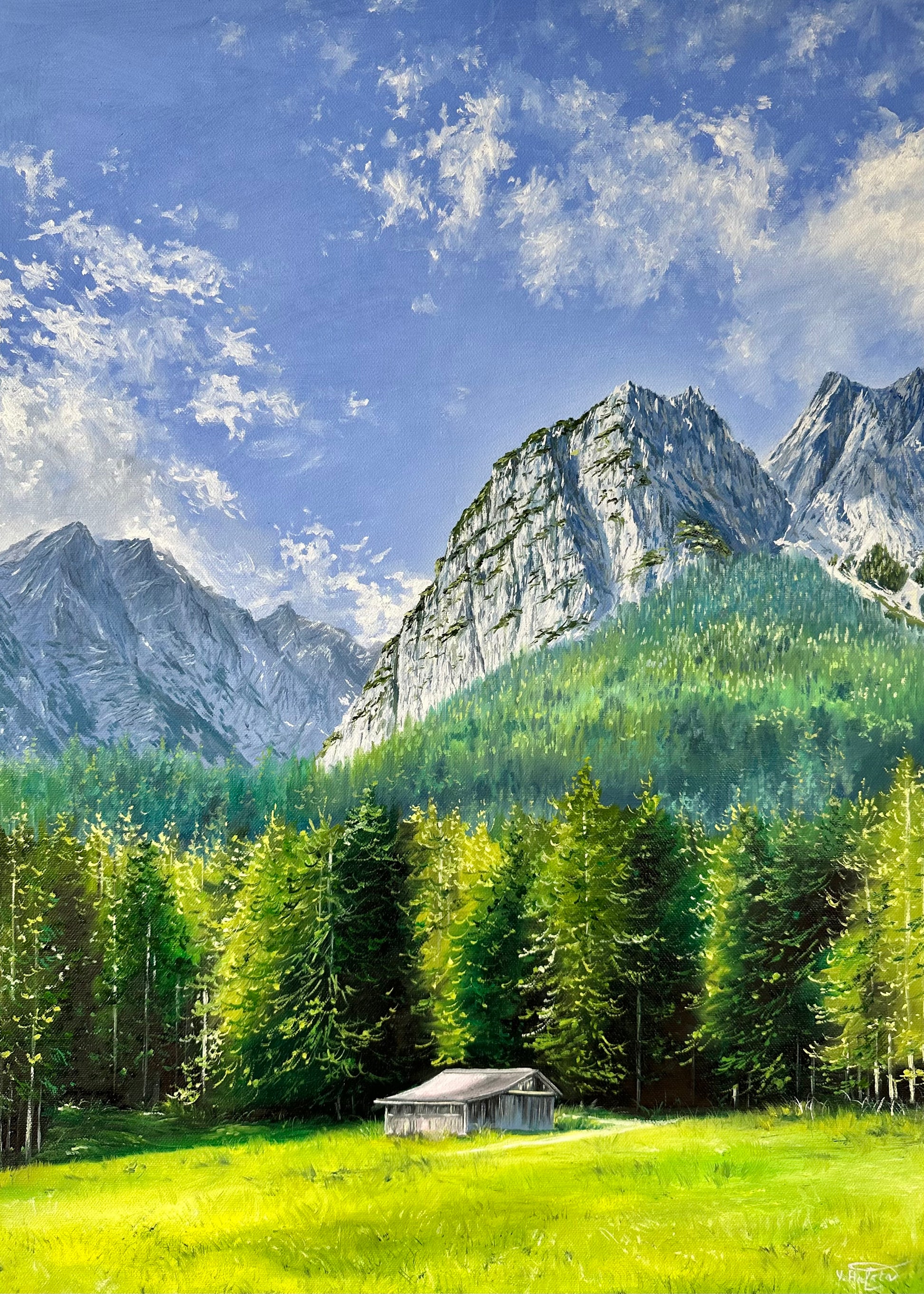 The painting depicts Waxenstein in Hammersbach, Germany.
