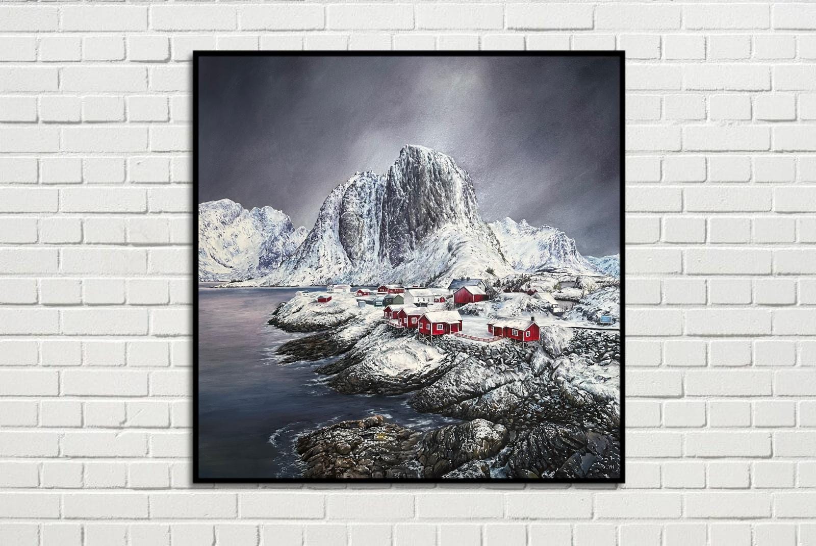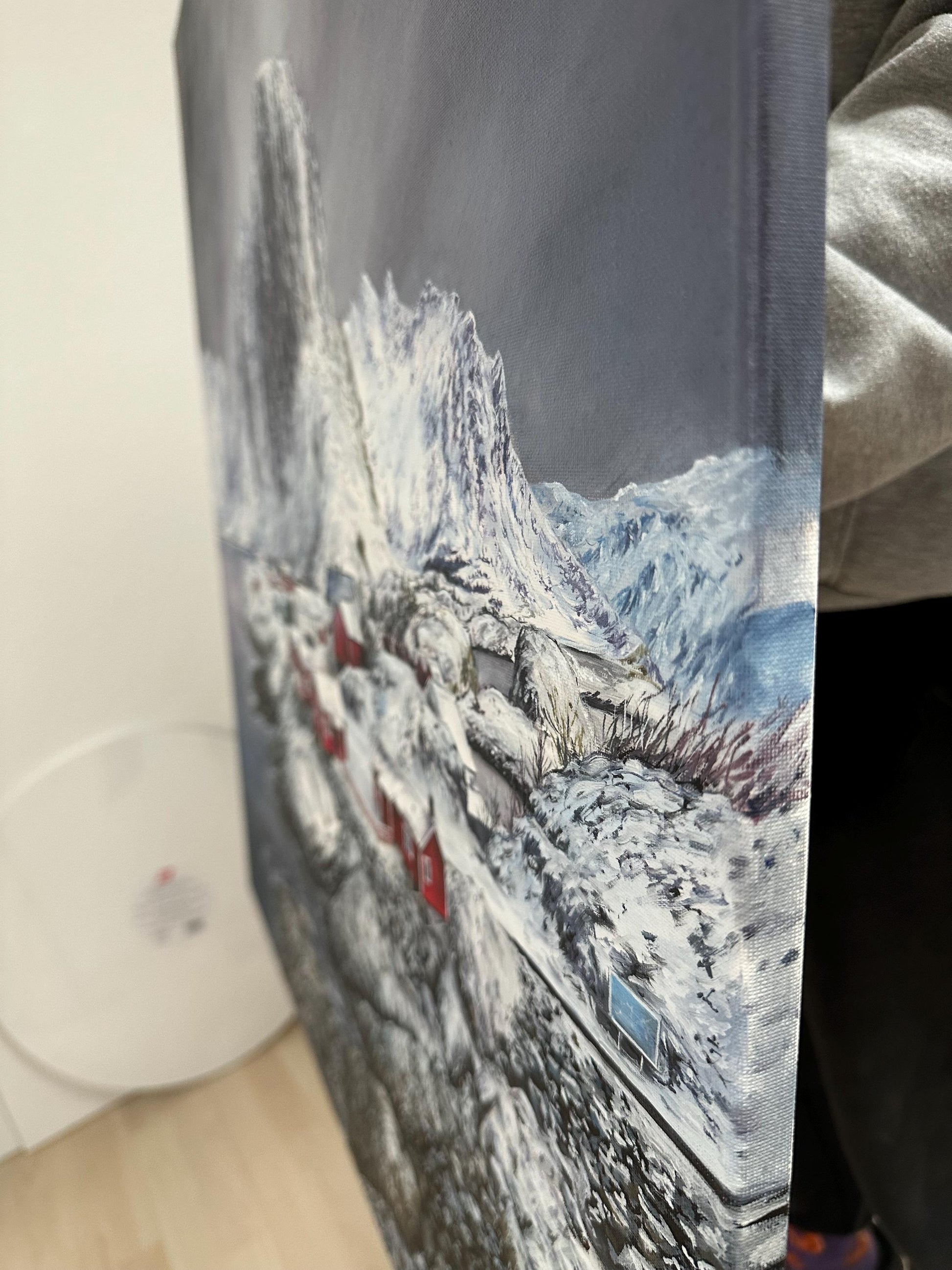 The sides are painted as a continuation of the scene, so it can be hung without a frame.