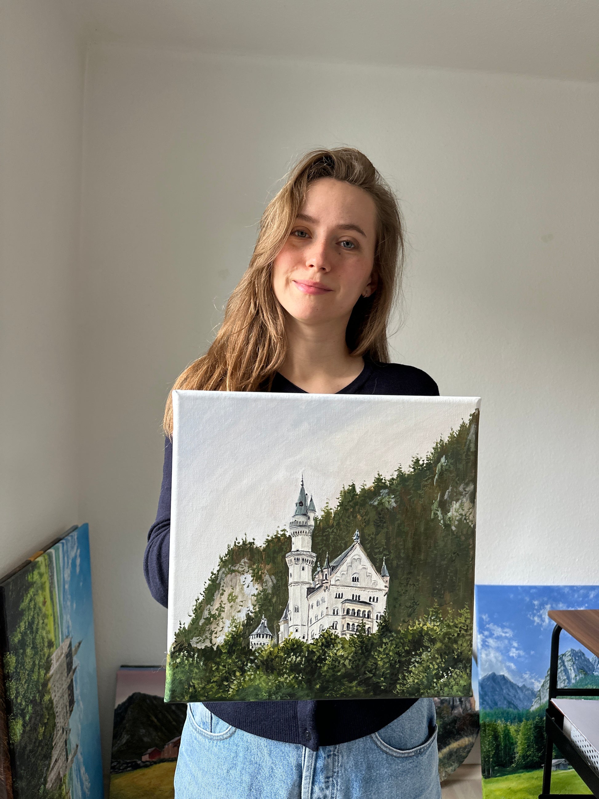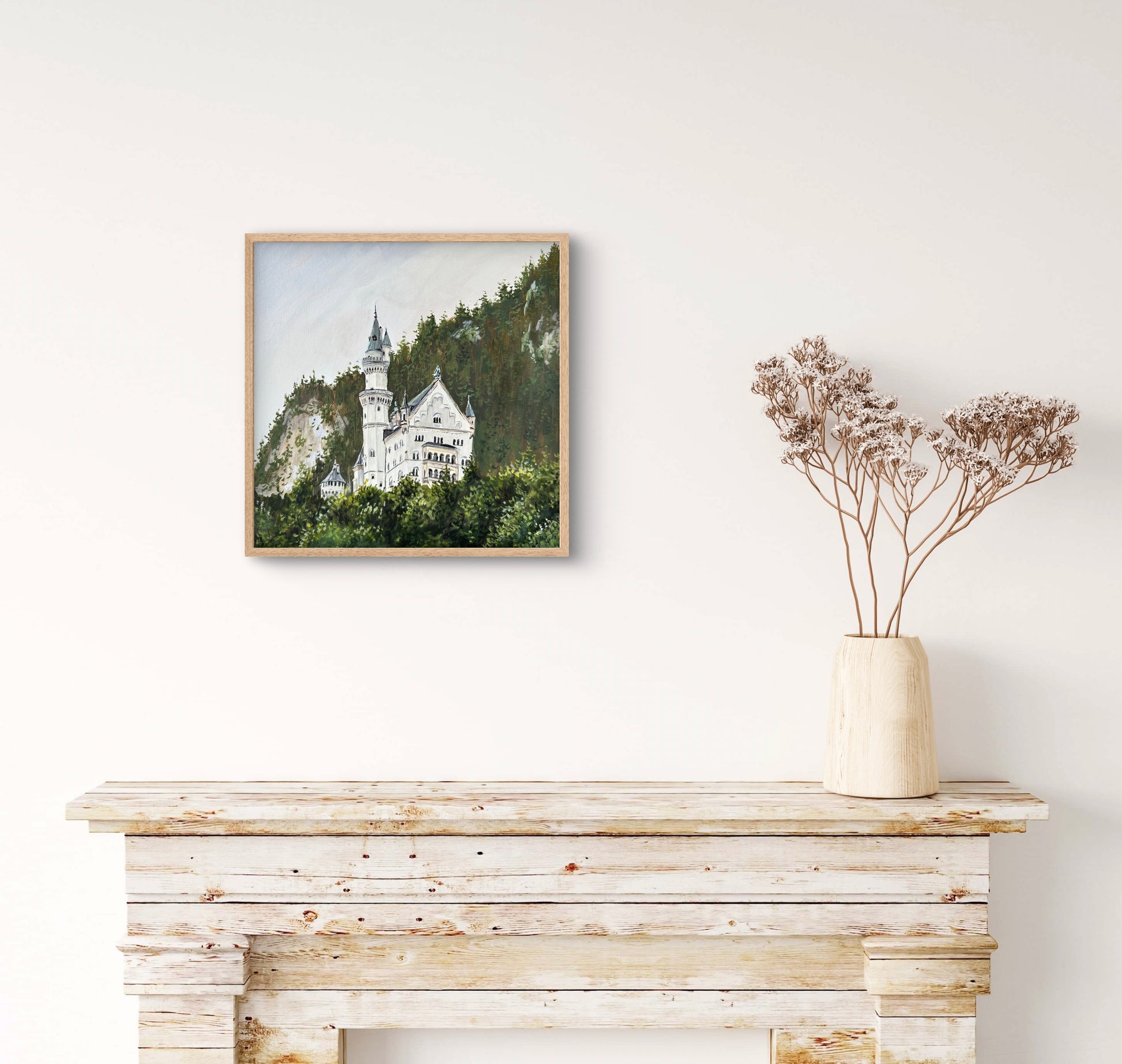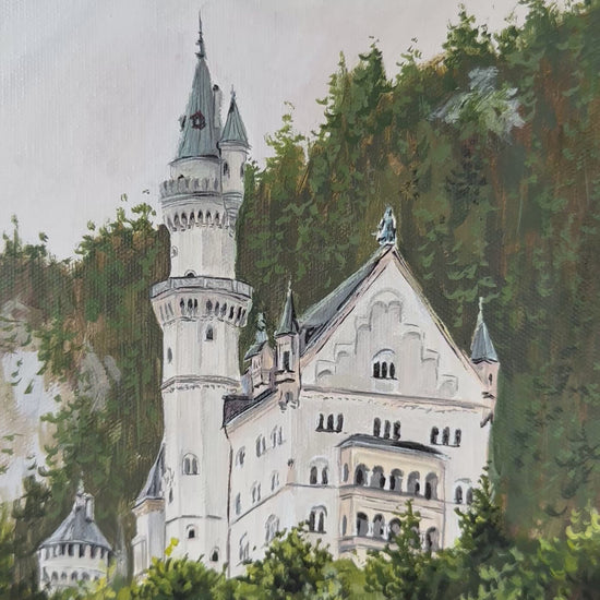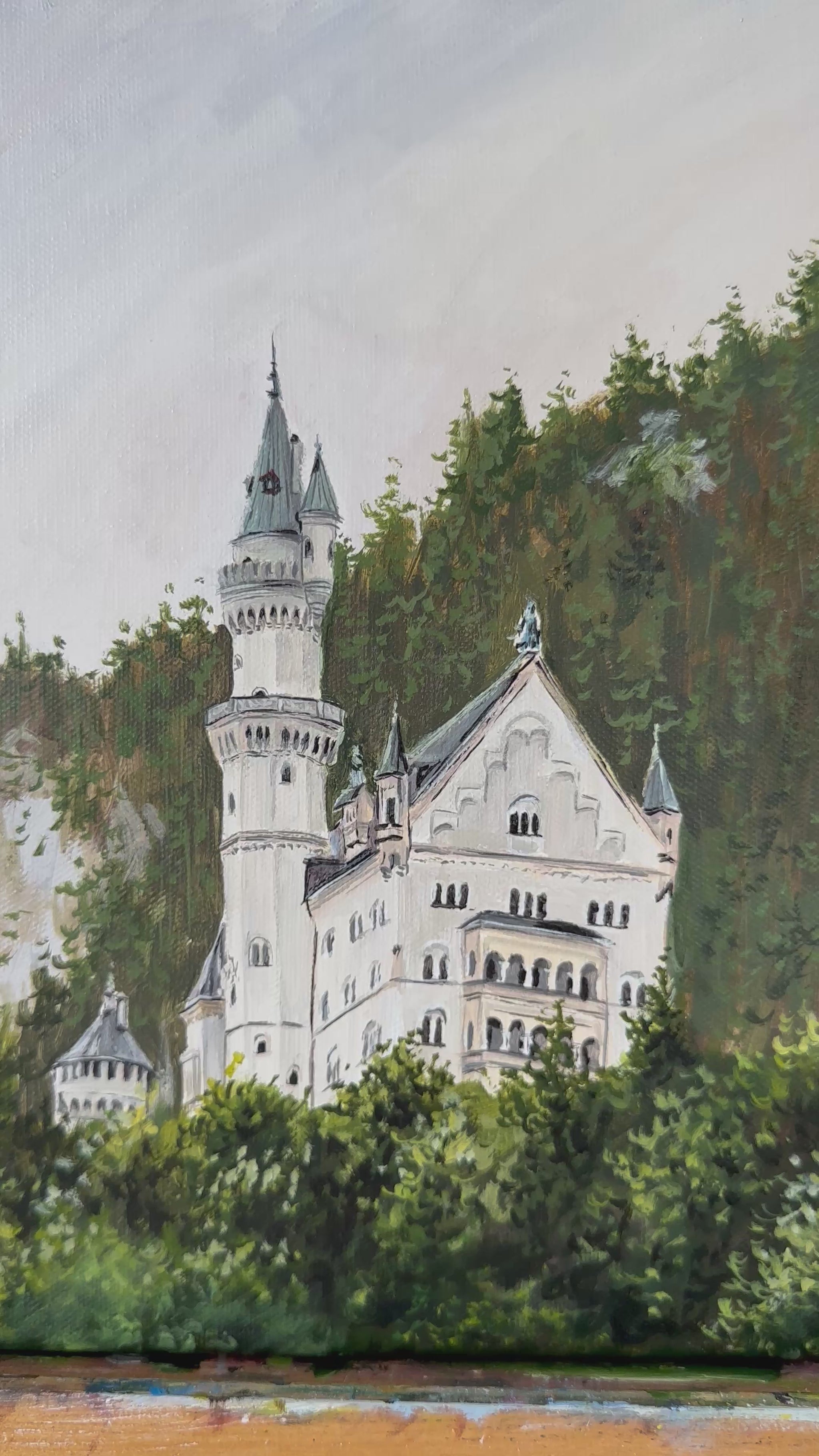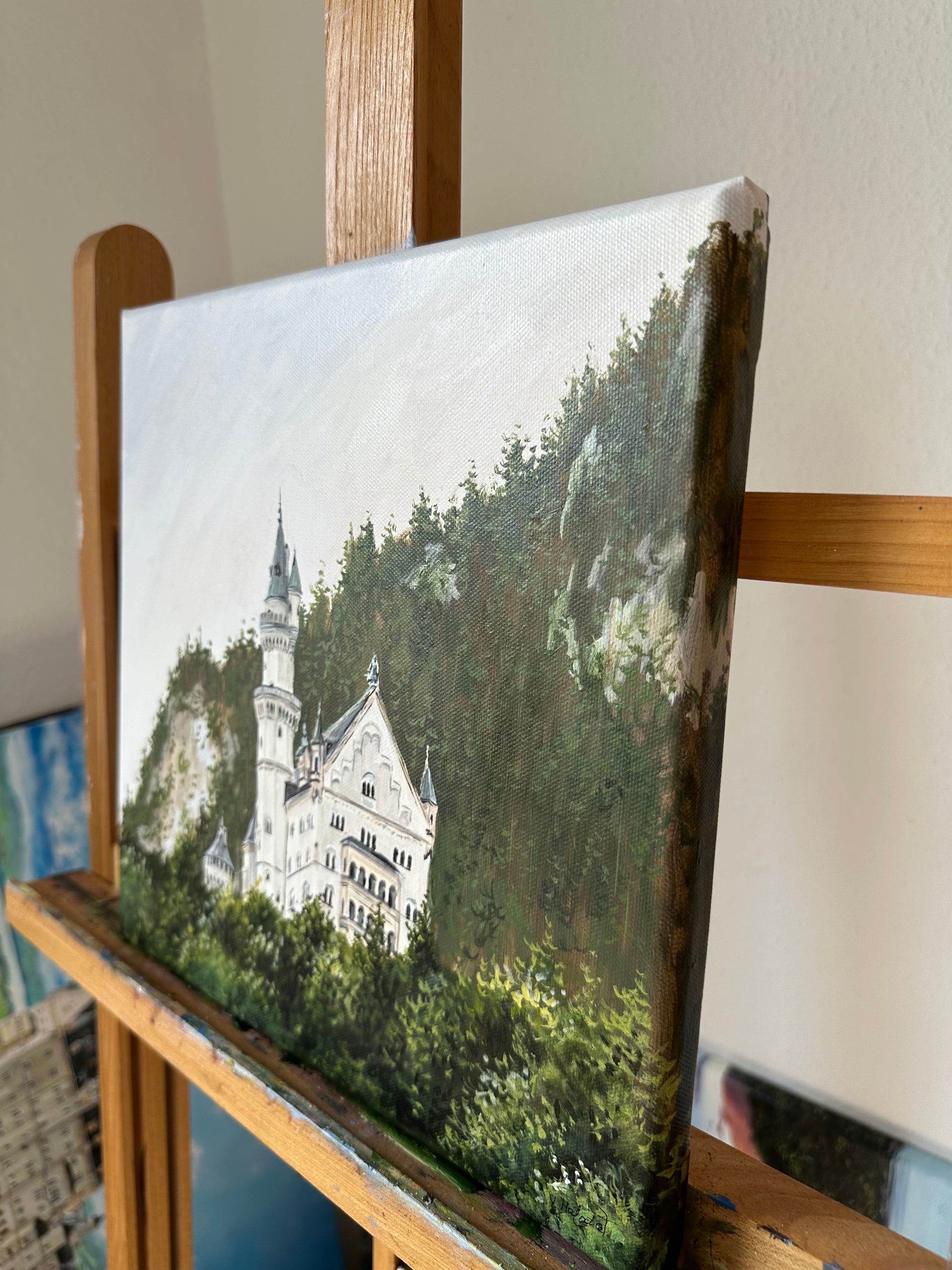 Mountain view with Neuschwanstein Castle, painted in acrylics.
