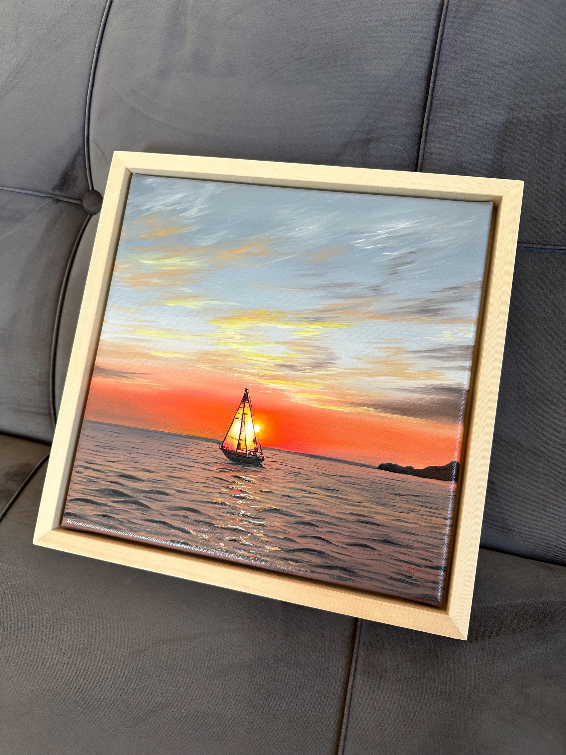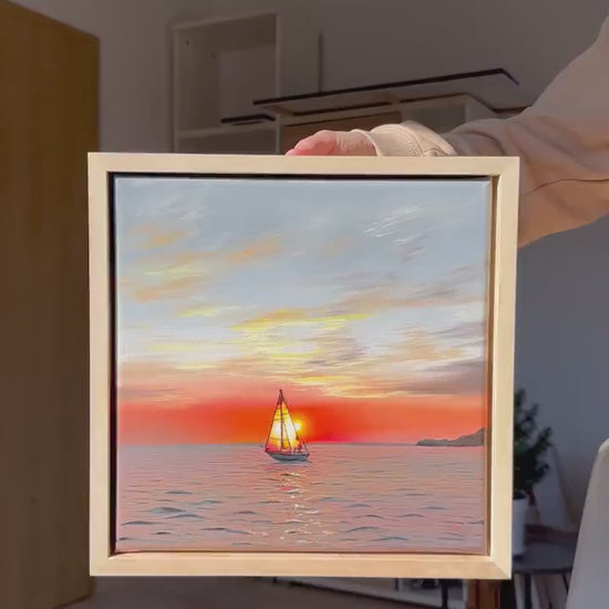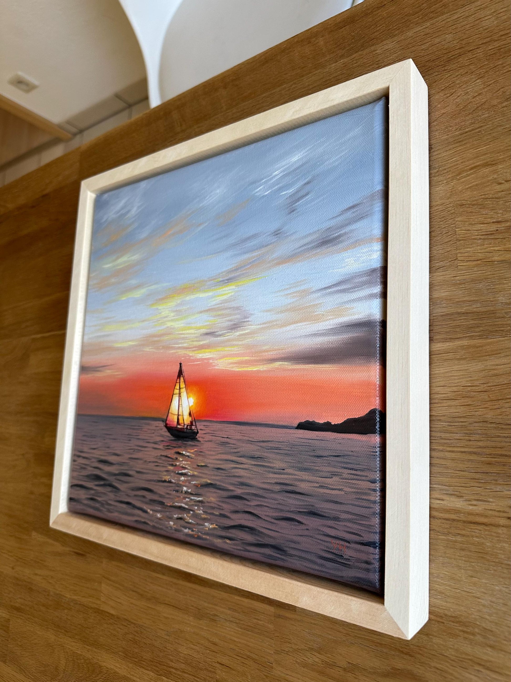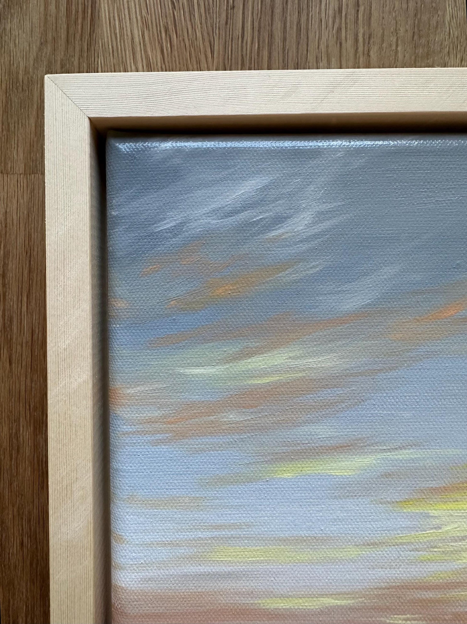The painting is varnished, mounted in a floating frame and ready to hang.