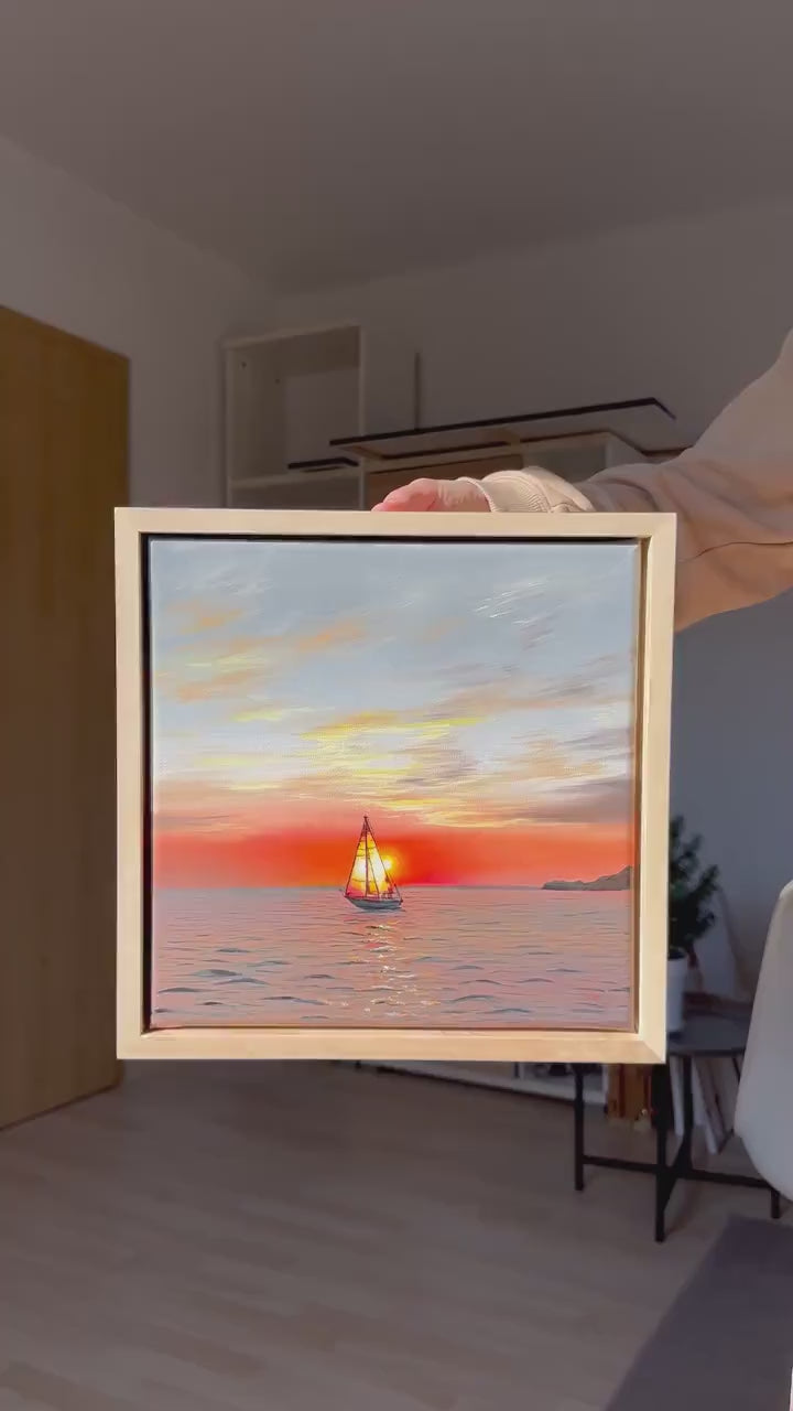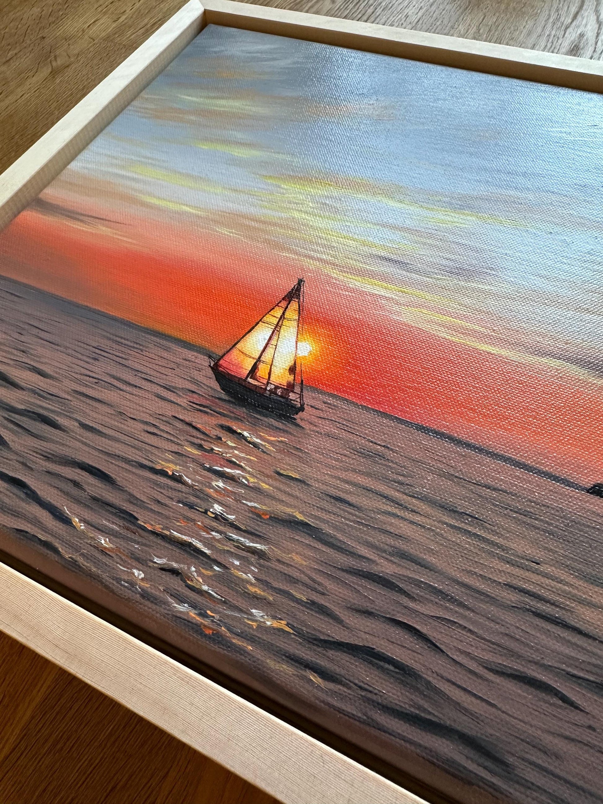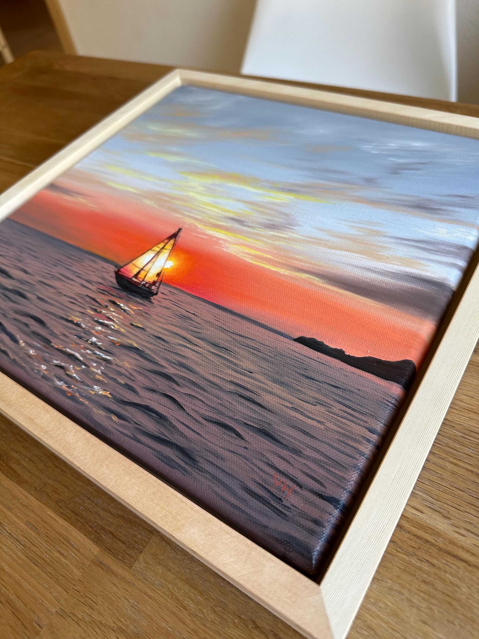 The painting is varnished, mounted in a floating frame and ready to hang.