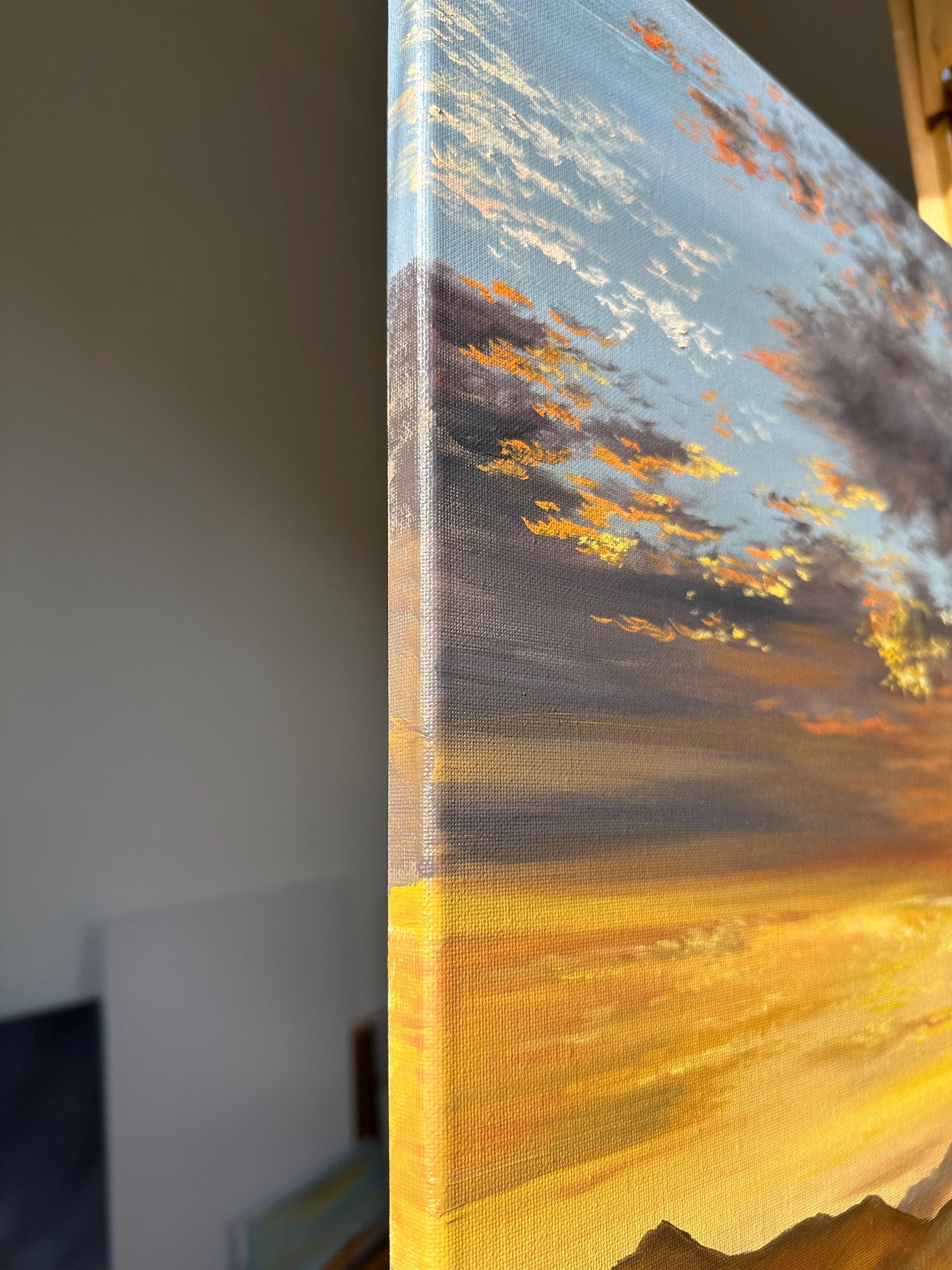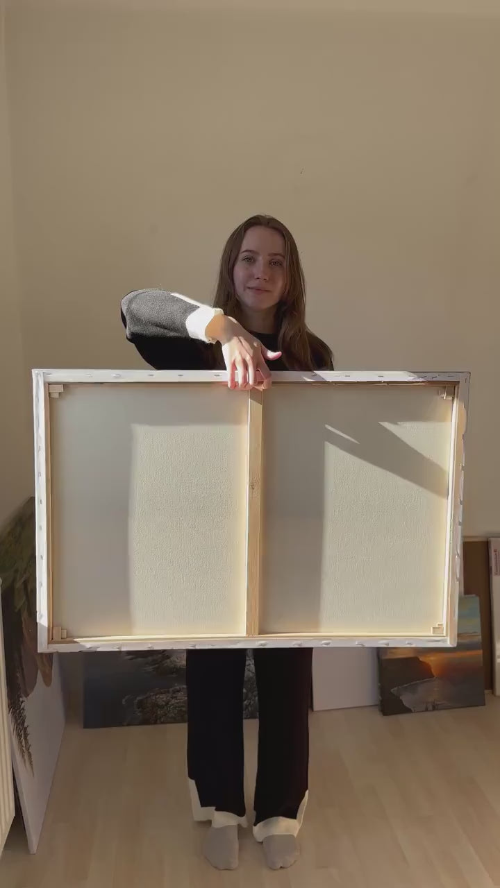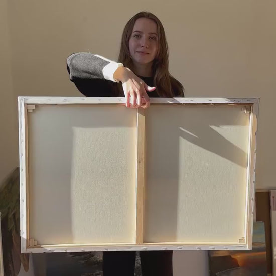 The sides are painted as a continuation of the scene, so it can be hung without a frame.